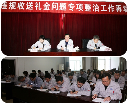 1月21日上午,公司召開集中開展違規(guī)收送禮金問題專項整治工作再動員會議,貫徹落實集團公司關(guān)于違規(guī)收送禮品禮金再動員大會的部署要求。會議由公司黨委副書記、總經(jīng)理封建利主持,公司領(lǐng)導(dǎo)班子成員,基層各單位負責(zé)人、機關(guān)各部室負責(zé)人以及機關(guān)黨員干部50余人參加了會議。 首先,公司財務(wù)總監(jiān)黃麗華傳達了陜有色集團集中開展違規(guī)收送禮金問題專項整治工作再動員會議精神。認真學(xué)習(xí)了集團紀委書記魏國林傳達的省紀委監(jiān)委負責(zé)人就全省集中開展違規(guī)收送禮金專項整治有關(guān)問題的解答,就如何幫助黨員干部放下思想包袱,消除思想顧慮?如何解決上繳違規(guī)收受禮金過程中泄漏身份信息?如何將違規(guī)收受的禮金上繳到全省公布的統(tǒng)一專用賬戶等等進行了詳細說明。又傳達學(xué)習(xí)了陜有色集團黨委書記、董事長馬寶平在會上的講話精神。深化教育引導(dǎo),增強敬畏意識。精準梳理排查,嚴肅執(zhí)紀審查。堅守責(zé)任擔(dān)當,務(wù)求整治實效。 接著,公司黨委書記、董事長拓劉毅做了講話。美鑫公司自元月2日起在全公司范圍內(nèi)開展了領(lǐng)導(dǎo)干部違反規(guī)定收送禮金專項整治工作,積極行動起來,宣傳貫徹落實會議精神,取得一定成效。這次開展再動員會,是公司黨委履行黨風(fēng)建設(shè)主體責(zé)任跟大家進行的一次集體談話,要求大家務(wù)必嚴肅對待、認真落實。拓劉毅從三個方面做了明確要求,一是思想認識要到位。“要把剎住“四風(fēng)”作為鞏固黨心民心的重要途徑,對享樂主義、奢靡之風(fēng)等歪風(fēng)陋習(xí)要露頭就打,對“四風(fēng)”隱形變異新動向要時刻防范,要深化標本兼治,夯實治本基礎(chǔ),一體推進不敢腐、不能腐、不想腐,做好三個堅決防止的心態(tài)。二是工作措施要到位。落實兩個責(zé)任,加強制度建設(shè)。各單位、各部室要按照專項整治黨員干部《自查自糾情況報告》的主要內(nèi)容,全面自查自糾思想認識上的偏差,副處級以上領(lǐng)導(dǎo)干部還要寫出個人自查自糾情況報告并作出承諾。三是表率作用要到位。領(lǐng)導(dǎo)干部發(fā)揮表率作用是黨的優(yōu)良傳統(tǒng)。一定要提高政治站位,增強“四個意識”、堅定“四個自信”,做到“兩個維護”,強化法紀敬畏和思想自覺。正確選擇個人愛好,慎重對待朋友交往,明辨是非,重品行,時刻檢點自己生活的方方面面。 最后,公司黨委副書記、總經(jīng)理封建利要求全面貫徹落實本次會議精神,進一步統(tǒng)一思想、凝聚共識,傳導(dǎo)壓力、精準發(fā)力,把專項整治工作引向深入。 |