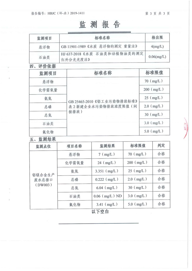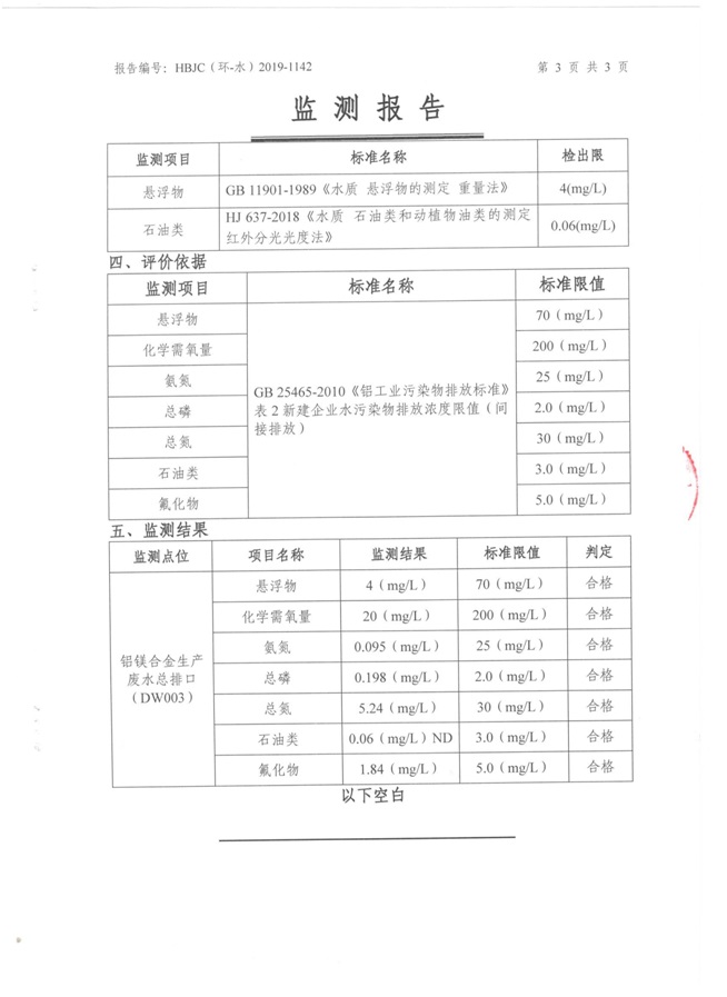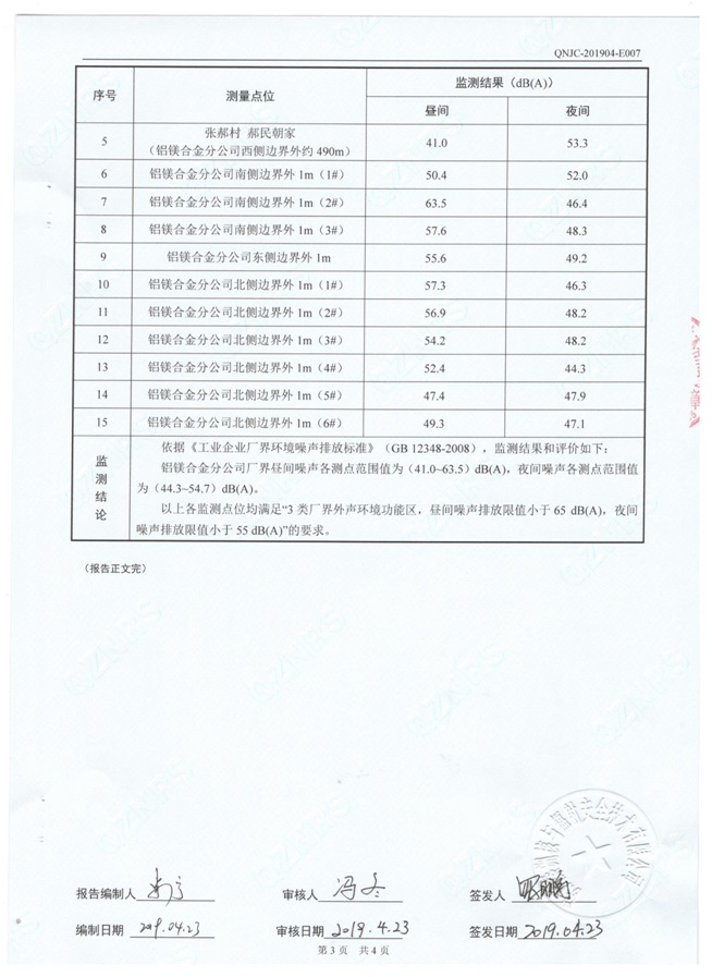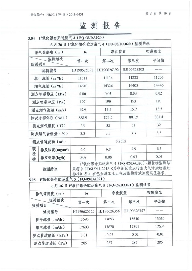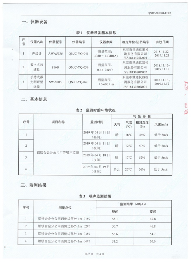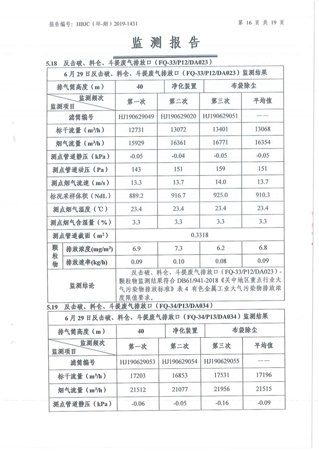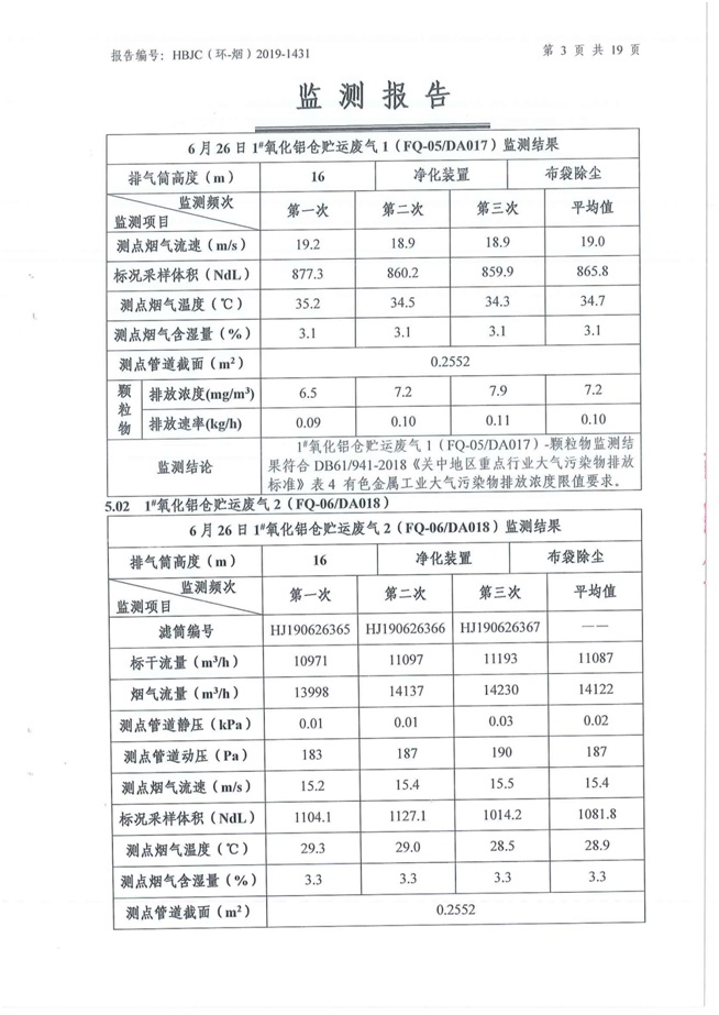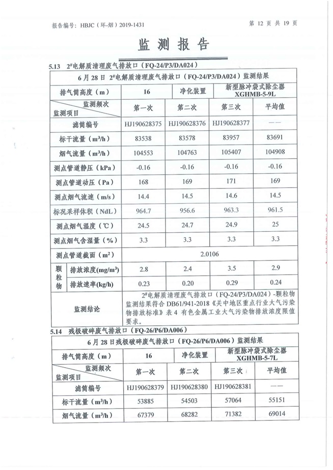 一、基礎(chǔ)信息: 陜西美鑫產(chǎn)業(yè)投資有限公司 統(tǒng)一社會(huì)信用代碼:91610200567136996Y 法定代表人:高曉兵 生產(chǎn)地址:陜西省銅川市董家河工業(yè)園區(qū) 聯(lián)系方式:09196982605 生產(chǎn)經(jīng)營(yíng)和管理服務(wù)的主要內(nèi)容、產(chǎn)品及規(guī)模: 美鑫公司在陜西有色、陜西煤化兩大集團(tuán)的正確領(lǐng)導(dǎo)下,在銅川市委、市政府的關(guān)心支持下,充分利用銅川資源型城市轉(zhuǎn)型政策,依托園區(qū)區(qū)位優(yōu)勢(shì),擬投資150億元,建設(shè)年產(chǎn)30萬(wàn)噸預(yù)焙陽(yáng)極、120萬(wàn)噸煤礦、30萬(wàn)噸鋁鎂合金及配套動(dòng)力站、20萬(wàn)噸鋁深加工、年吞吐量500—800萬(wàn)噸物流園等循環(huán)經(jīng)濟(jì)項(xiàng)目。該集群項(xiàng)目已被列入《陜西省國(guó)民經(jīng)濟(jì)和社會(huì)發(fā)展第十二個(gè)五年規(guī)劃綱要》,為陜西省“58123”項(xiàng)目之一。美鑫公司以循環(huán)經(jīng)濟(jì)為路徑,堅(jiān)持經(jīng)濟(jì)增長(zhǎng)與環(huán)境保護(hù)協(xié)調(diào)發(fā)展,聚合資源與資本,走綠色發(fā)展、清潔發(fā)展、低碳發(fā)展的循環(huán)經(jīng)濟(jì)轉(zhuǎn)型升級(jí)之路。 陜西美鑫鋁鎂合金分公司采用的500kA預(yù)焙陽(yáng)極電解槽,自動(dòng)化程度高,電解槽打殼、加料全過(guò)程均由微機(jī)自動(dòng)控制,從而使槽罩開(kāi)啟次數(shù)顯著降低,電解槽集氣效率能夠達(dá)到99%,大大地減少了煙氣無(wú)組織排放。項(xiàng)目配置了2套電解煙氣凈化系統(tǒng),經(jīng)捕集的煙氣通過(guò)排煙支管進(jìn)入排煙總管,采用電解鋁生產(chǎn)原料—氧化鋁吸附阻濾煙氣中的氟化氫氣體及含氟煙塵,吸附后的載負(fù)氧化鋁進(jìn)入袋式除塵器,經(jīng)氣固分離后進(jìn)入石灰石—石膏脫硫系統(tǒng)脫硫。 陜西美鑫產(chǎn)業(yè)投資有限公司鋁鎂合金分公司2019年2季度自行監(jiān)測(cè)如下: 二、監(jiān)測(cè)方案: 1 大氣污染源監(jiān)測(cè)