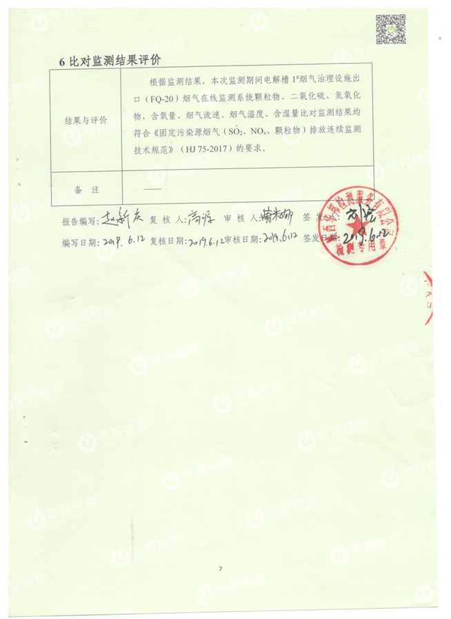 1.1電解槽煙氣治理設(shè)施總排口CEMS在線設(shè)備比對(duì)監(jiān)測(cè)