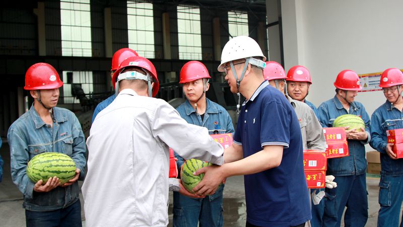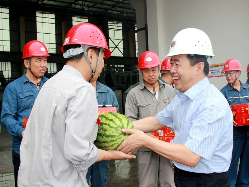 在鋁鎂合金分公司一通廊,公司領導李書平、寧文衛(wèi),監(jiān)事會主席王志鋒與電解兩車間干部職工一起,從園區(qū)領導手中接過飲料、茶葉、西瓜、冰糖等夏季消暑降溫物品。禮輕人意重,通過開展送清涼活動,充分體現(xiàn)了管委會“服務轉(zhuǎn)型發(fā)展、服務入園企業(yè)、服務當?shù)厝罕姟钡摹叭⻊铡崩砟睿艿綇V大干部職工的普遍歡迎和好評。 |