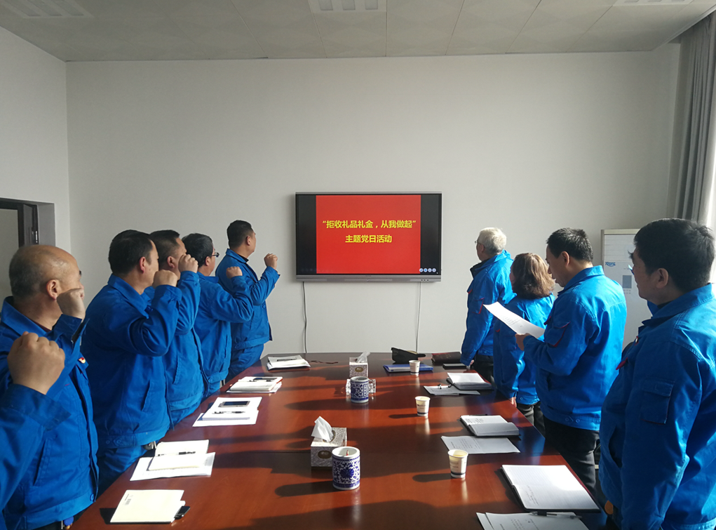 為營(yíng)造風(fēng)清氣正的節(jié)日氛圍,增強(qiáng)黨員干部廉潔自律意識(shí)。1月14日下午,錦陽(yáng)電廠黨支部組織開(kāi)展“拒收禮品禮金,從我做起”主題黨日活動(dòng),會(huì)議由黨支部書(shū)記、經(jīng)理孫陽(yáng)主持,中層以上黨員干部參加。 會(huì)上,全體黨員干部在孫陽(yáng)的帶領(lǐng)下,全體起立,鄭重承諾:忠于黨的事業(yè),遵守黨紀(jì)國(guó)法;嚴(yán)守政治規(guī)矩,增強(qiáng)四個(gè)意識(shí);恪守職業(yè)道德,認(rèn)真履職盡責(zé);忠于黨的事業(yè),遵守黨紀(jì)國(guó)法;強(qiáng)化自我約束,嚴(yán)格家教家風(fēng);堅(jiān)決反對(duì)四風(fēng),杜絕謀求特權(quán);努力做一名信念堅(jiān)定、勤政務(wù)實(shí)、敢于擔(dān)當(dāng)、清正廉潔的黨員干部,為公司高質(zhì)量高效益發(fā)展貢獻(xiàn)力量。隨后,與會(huì)人員一起觀看了中央紀(jì)委國(guó)家監(jiān)委宣傳部、中央廣播電視總臺(tái)聯(lián)合攝制的紀(jì)實(shí)專題片《國(guó)家監(jiān)察》第一集《擘畫(huà)藍(lán)圖》。 觀看完視頻后,孫陽(yáng)對(duì)全體中層黨員管理干部提出了幾點(diǎn)建議:一是要求全體黨員干部,通過(guò)視頻中的案例深刻反思,汲取教訓(xùn);二是要知敬畏,存戒懼,守底線,切實(shí)筑牢清正廉潔的思想堤壩;三是要防微杜漸,慎獨(dú)慎微,不踩紅線,防止小問(wèn)題釀成大錯(cuò)誤,確保黨員干部風(fēng)清正氣。 |