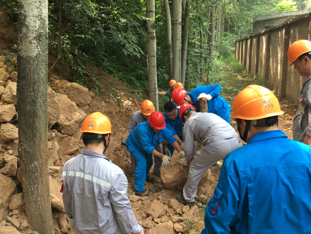 7月15日上午,水源地值班巡檢人員發(fā)現(xiàn)水源地排洪渠塌方,凈水站值班人員立即趕赴現(xiàn)場進行查看,發(fā)現(xiàn)塌方面積較大,排洪渠已完全掩埋。發(fā)電部部門管理干部、黨員、職工聽說險情后,毫不退縮積極參與搶險活動,立刻組成了15人搶險小分隊。為盡快排除安全隱患,大家放棄午休時間,攜帶鐵锨、鐵鋤、榔頭等工具急速驅(qū)車趕赴水源地進行搶險工作。 水源地加壓泵站地處東柳村東側(cè)溝底,地勢低凹,每年雨季前都會對各條排水、排洪渠進行檢查清理。由于近期雨水較多,加之排洪渠兩側(cè)土質(zhì)較為松軟,容易引起塌方和泥石流災(zāi)害,此次塌方對水源地加壓泵站造成了極大安全隱患,會對各分公司供水造成威脅。搶險小分隊到達現(xiàn)場后,發(fā)電部主任高迪任根據(jù)現(xiàn)場情況迅速制定搶險方案,要求大家在保證安全的前提下,分兩組輪流開展搶險活動,并安排專人時刻關(guān)注塌方處山體變化,出現(xiàn)異常立即停止,馬上撤離險地。 雨后的夏日,陽光火辣的照耀著大地,更添幾分悶熱,鮮紅的黨旗在陽光下顯得異常艷麗,更是點燃了各位黨員干部的熱情,激發(fā)了他們的干勁。大家分工明確,有條不紊的進行著清障工作,有人拿大錘分解體積龐大的土塊,有人拿鐵耙和鐵锨清理著渠里的雜物...即使汗水浸濕了衣服,大家卻毫無怨言、不遺余力,經(jīng)過3個小時的艱苦奮戰(zhàn),排洪渠徹底疏通,確保了水源地加壓泵站的排水安全。 本次搶險活動,充分發(fā)揮了基層黨組織戰(zhàn)斗保壘作用和黨員先鋒模范作用,展現(xiàn)出不怕苦、不怕累,勇挑重擔的新時代美鑫職工新風貌。 |