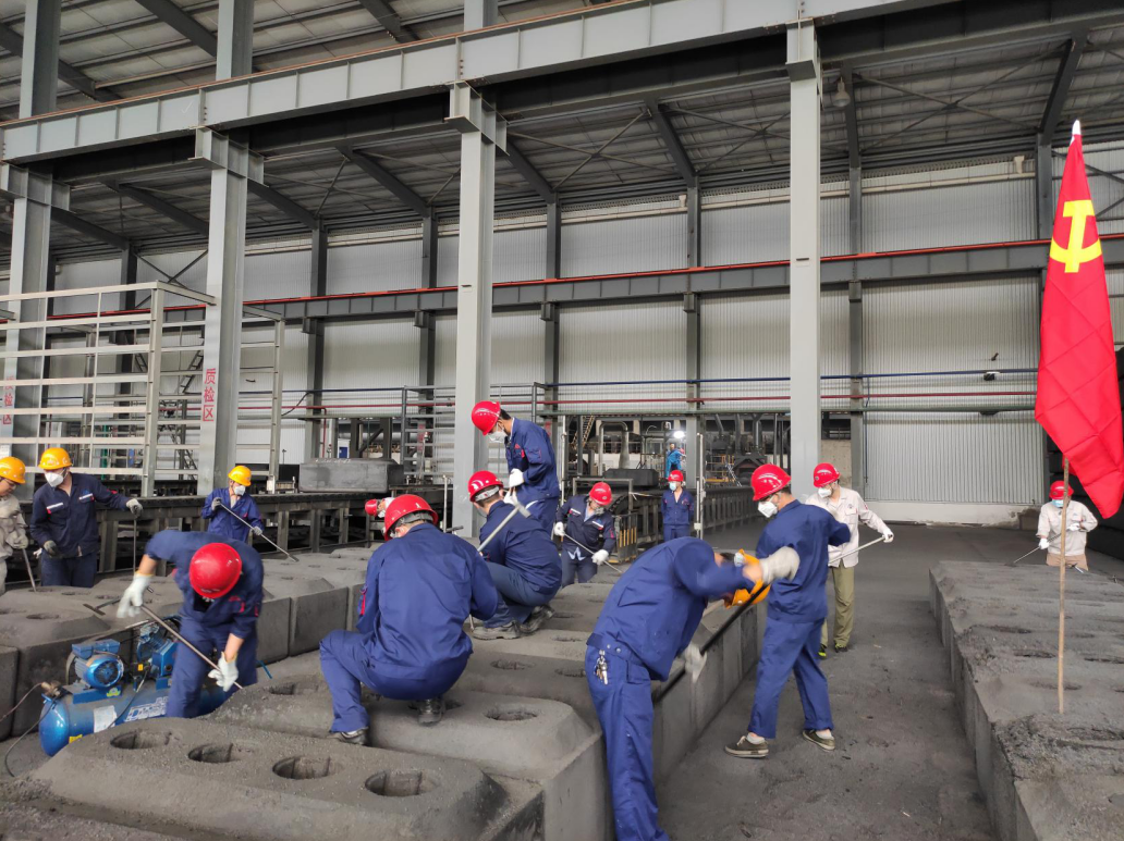 為充分發(fā)揮黨員先鋒模范作用,弘揚(yáng)奉獻(xiàn)精神,近日,陽極分公司為解決焙燒陽極熟塊填充料粘結(jié)嚴(yán)重、外觀清理速度慢、影響生產(chǎn)進(jìn)度的問題,陽極分公司黨總支結(jié)合生產(chǎn)實(shí)際,組織開展了陽極熟塊清焦義務(wù)勞動(dòng)主題黨日活動(dòng)。活動(dòng)自從7月21日至24日歷時(shí)四天,共計(jì)102名黨員干部、管理人員參與了此次活動(dòng)。 活動(dòng)中,各支部黨員職工積極踴躍、爭先恐后,按照分工任務(wù)計(jì)劃和清焦要求,大家分工協(xié)作、相互配合,對陽極熟塊表面粘接的焦粒及炭碗進(jìn)行了清理,勞動(dòng)現(xiàn)場熱火朝天,一片繁忙。經(jīng)過四天的奮戰(zhàn),共清理陽極熟塊208塊,極大的緩解了焙燒塊清焦難題,有效保障焙燒車間生產(chǎn)速度和任務(wù)量。 通過此次活動(dòng)的開展,充分發(fā)揮了廣大黨員勇于擔(dān)當(dāng)、甘于奉獻(xiàn)的精神,進(jìn)一步增強(qiáng)了黨組織的凝聚力和戰(zhàn)斗力,展示了陽極分公司黨員職工團(tuán)結(jié)一致的良好風(fēng)貌。 |
