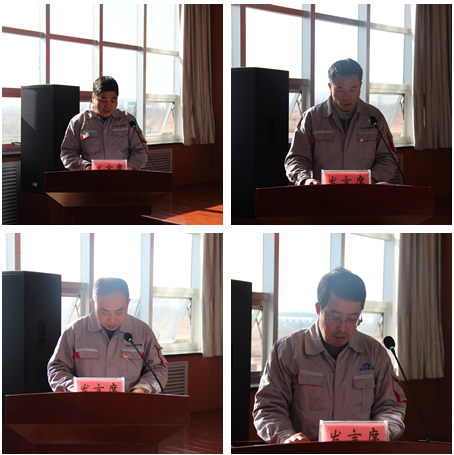 會上,電廠副經(jīng)理薛民勝傳達公司《關于切實加強2021年安全生產(chǎn)工作的決定》;電廠副經(jīng)理郭軍營作2020年安全生產(chǎn)工作報告;電廠黨總支書記、經(jīng)理孫陽與各部門、項目部簽訂《安全生產(chǎn)、環(huán)境保護、消防工作目標考核責任書》;電廠主要負責人、分管安全生產(chǎn)以及安全管理人員分級作出安全生產(chǎn)承諾;電廠相關部門及項目部就全面做好2021年度安全生產(chǎn)工作進行表態(tài)發(fā)言。