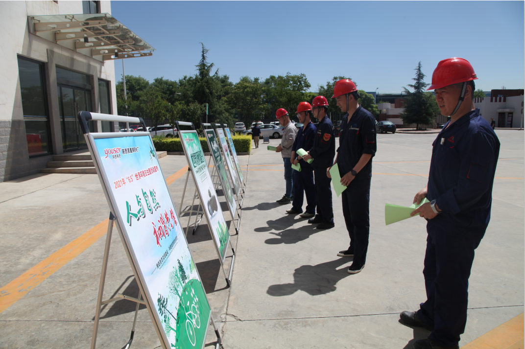 儀式結(jié)束后,與會全體職工在“人與自然和諧共生”宣傳橫幅上簽字并現(xiàn)場觀看了環(huán)保宣傳展板。