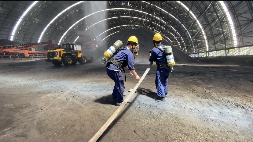 本次演練,燃運(yùn)部結(jié)合生產(chǎn)現(xiàn)場實(shí)際情況,參考大量事故案例,系統(tǒng)分析了燃運(yùn)部現(xiàn)階段潛在的風(fēng)險隱患和事故應(yīng)急能力,模擬制定干煤棚存煤自燃火災(zāi)事故應(yīng)急演練預(yù)案;馂(zāi)發(fā)生后,現(xiàn)場巡檢人員發(fā)現(xiàn)火情后立即匯報當(dāng)班班長,班長匯報部門值班領(lǐng)導(dǎo),部門接到火警后,立即啟動消防應(yīng)急預(yù)案。演練現(xiàn)場多專業(yè)聯(lián)合處置,利用消防水炮、消防栓及車輛高壓沖洗水炮對前期明火進(jìn)行消除,防止事故擴(kuò)大。裝載機(jī)密切配合,將部分燃煤鏟運(yùn)至空曠區(qū)域,防止二次復(fù)燃。