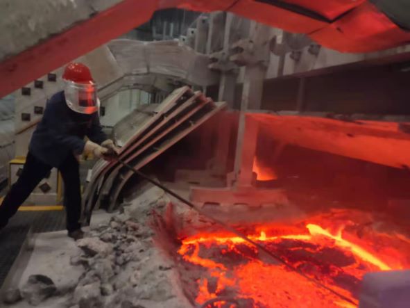 時(shí)值酷暑,烈日當(dāng)空,火辣辣的陽(yáng)光曝曬著大地。在鋁鎂合金分公司電解廠房里,電解爐散發(fā)出來(lái)的陣陣余熱,讓整個(gè)廠房像是一座蒸爐,但這樣的高溫條件并不能阻擋電解一線員工的工作熱情。他們內(nèi)穿秋衣秋褲,外穿厚實(shí)的牛仔工作服,腳踩隔熱鞋,頭戴裝有防護(hù)鏡的頭盔,手上套著沉甸甸的隔熱手悶子,在高達(dá)60℃的工作環(huán)境中揮汗如雨,用實(shí)際行動(dòng)詮釋著敬業(yè)和奉獻(xiàn)的含義,譜寫出一曲曲戰(zhàn)高溫、斗酷暑的勞動(dòng)贊歌。 就是在這樣的環(huán)境下,隨處可以看到換極的、出鋁的、撈渣的、打火眼的、收邊整形的等高溫作業(yè)。 快看,換極人將槽罩打開的瞬間,高達(dá)七八百度的熱輻射撲面而來(lái),他們穿戴上阻燃隔熱的圍裙、套袖、防護(hù)面罩、防護(hù)鏡,使原本就高溫的工作環(huán)境更加悶熱異常,他們先將“換極安全護(hù)欄”安放到位,然后扛起大鉤沖進(jìn)槽間開始鉤撈殼面塊。撈完殼面塊放下大鉤換成大耙再次進(jìn)入工作面的電解工開始處理爐底,鉤、帶、扒一系列動(dòng)作猶如行云流水一樣。這一工作最為費(fèi)時(shí),必須將爐底處理干凈,才能避免換極后可能出現(xiàn)的電壓波動(dòng)。最后就是測(cè)量?jī)伤,清掃平衡母線浮灰,指揮安放新極,人工初封極,天車覆蓋保溫料。為了避免電解槽出現(xiàn)不必要的換極波動(dòng),所有的工作必須在20分鐘之內(nèi)完成。汗水模糊了雙眼、秋衣秋褲、工作服早已被汗水浸透,但是電解人沒有一句怨言,依然堅(jiān)守在電解槽旁,有條不紊的進(jìn)行著標(biāo)準(zhǔn)操作。大杯大杯的綠豆湯,咕嘟咕嘟的灌下,一次兩瓶的藿香正氣水一口就被喝干...... 戰(zhàn)高溫,熱情不減;斗酷暑,決心依然。他們選擇堅(jiān)守、選擇奉獻(xiàn),是因?yàn)樗麄兂嗾\(chéng)不變的“電解情”,是因?yàn)樗麄兩砩系呢?zé)任和擔(dān)當(dāng)......致敬在高溫下奮斗的電解人! |