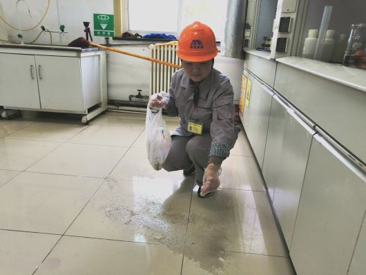 演練開始前,檢驗(yàn)三室專工楊新興就應(yīng)急演練的相關(guān)情況作了簡單的介紹,強(qiáng)調(diào)了演練注意事項。本著實(shí)戰(zhàn)原則,大家做好分工、準(zhǔn)備就緒后,演練正式開始;(yàn)班分析人員周文在配制化學(xué)試劑時不小心將濃鹽酸打翻在地,身上、手部被灼傷。險情一出現(xiàn),班長段云第一時間撥打急救電話,將受傷人員帶離現(xiàn)場,開展緊急救治,并報告專工。專工隨即啟動應(yīng)急預(yù)案,封鎖事故現(xiàn)場,撤離無關(guān)人員,對受污染的工作服和灑落地面的濃鹽酸進(jìn)行處置,以避免造成二次傷害和環(huán)境污染。隨著120醫(yī)護(hù)人員將受傷人員送至醫(yī)院,演練順利完成。