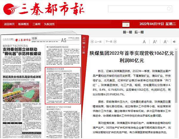 陜煤集團2022年首季實現(xiàn)營收1062億元利潤80億元 昨日,記者從陜煤集團獲悉,2022年一季度,陜煤集團主要產(chǎn)品產(chǎn)量和經(jīng)濟指標均創(chuàng)歷史新高,下屬黃陵礦業(yè)、蒲白礦業(yè)、檸條塔礦業(yè)、北元集團、紅柳林礦業(yè)等20余家單位均實現(xiàn)首季“開門紅”。陜煤集團煤炭、化工產(chǎn)品、粗鋼、發(fā)電量同比分別增長4.8%、8.4%、6.1%和9.6%。實現(xiàn)營收1062億元、利潤80億元,同比分別增長20.9%和66.7%。 據(jù)悉,目前穩(wěn)增長壓力大、任務(wù)重的緊迫形勢,陜煤集團注重精準施策,強化責任擔當。成立穩(wěn)增長工作領(lǐng)導(dǎo)小組,制定煤炭保供穩(wěn)價工作方案,建立穩(wěn)增長專項考核機制,多次召開穩(wěn)增長工作推進會,協(xié)調(diào)解決穩(wěn)增長工作中存在的突出矛盾和主要問題。 面對疫情反復(fù),陜煤集團科學(xué)組織生產(chǎn),統(tǒng)籌推進疫情防控和滿產(chǎn)達產(chǎn)。36對生產(chǎn)礦井和所有發(fā)電企業(yè)春節(jié)期間滿負荷生產(chǎn),充分釋放智能化礦井的先進產(chǎn)能,有力保障國家能源安全穩(wěn)定供應(yīng)。 發(fā)揮自有鐵路、自備車等產(chǎn)業(yè)鏈供應(yīng)鏈優(yōu)勢,陜煤集團一季度日均煤炭產(chǎn)量和發(fā)電量產(chǎn)能釋放遠超去年同期水平。扎實推進安全生產(chǎn)專項整治三年行動,持續(xù)開展安全生產(chǎn)大排查大整改,大力實施減污降碳協(xié)同增效。 同時,陜煤集團成立領(lǐng)導(dǎo)掛帥項目前期工作小組,扎實推進“十四五”項目前期手續(xù)辦理。打出強組織協(xié)調(diào)、促項目建設(shè)、控投資概算、保工程質(zhì)量“組合拳”,搶抓國家煤炭保供、發(fā)展煤基特種燃料等政策機遇,加快建設(shè)榆林化學(xué)一期、神木煤化工煤焦油加氫制環(huán)烷基油和孟村煤礦等一批“十四五”重點產(chǎn)業(yè)項目。 全力實施國企改革三年行動,持續(xù)優(yōu)化集團管控模式,積極融入秦創(chuàng)原建設(shè),設(shè)立30億元科技研究創(chuàng)新基金,聚焦新材料、新能源、新經(jīng)濟,以改革創(chuàng)新催生穩(wěn)增長新動能。下一階段,陜煤集團將堅持穩(wěn)字當頭、穩(wěn)中求進工作總基調(diào),持續(xù)鞏固生產(chǎn)企業(yè)高產(chǎn)穩(wěn)產(chǎn)態(tài)勢,大力推進重點項目建設(shè),強化資金保障,筑牢安全環(huán);A(chǔ),為全省經(jīng)濟社會健康穩(wěn)定發(fā)展和穩(wěn)增長貢獻“陜煤力量”。 |