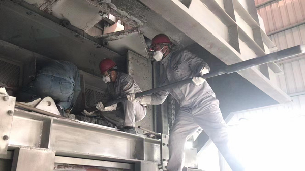 鋁鎂合金分公司檢修車間檢修二班承擔(dān)著鋁鎂合金供料車間、鑄造車間、電解槽控系統(tǒng)大小設(shè)備的維護(hù)、檢修任務(wù)。連續(xù)高溫天氣的“炙熱模式”使車間的鋼筋廠房變成了“大蒸爐”。在這樣的條件下,要確保每臺設(shè)備良好運行,就更得細(xì)化工作、強化責(zé)任,緊繃“安全弦”。 8月31日下午4:50分,在大家即將結(jié)束忙碌了一天的工作準(zhǔn)備交接班時,檢修二班接到在崗職工延遲下班的通知。由于2號混合爐爐溫低于650攝氏度,經(jīng)現(xiàn)場確認(rèn)需要進(jìn)行硅碳棒更換作業(yè),只見他們熟練的整理工器具、穿戴勞保,迅速趕到現(xiàn)場與鑄造工密切配合,斷電、拉警戒線、搭建工作平臺……他們在墊著木板的爐門排煙罩內(nèi)工作了近三個小時,將一根根硅碳棒用5米的角鐵架送入爐膛,汗水浸濕了他們的全身,油污沾滿了他們的雙手,廠房周圍的設(shè)備轟鳴聲干擾不到他們,爐里散發(fā)的滾滾熱浪趕不走他們,因為他們心中有著無限力量。 高溫下⼀幕幕忙碌的身影讓我肅然起敬,這就是三伏天維修工的日常縮影,他們揮汗如雨,堅守崗位,不言退縮,在自己平凡的崗位上接受著高溫的考驗和洗禮,為車間的安全運轉(zhuǎn)保駕護(hù)航,用汗水和智慧詮釋著愛崗敬業(yè)的責(zé)任與擔(dān)當(dāng)。 |
