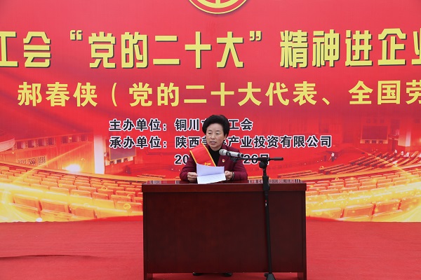 10月26日,公司邀請黨的二十大代表、全國勞模、銅川市耀州區(qū)石柱鎮(zhèn)西古莊村黨支部書記、村委會主任郝春俠進企業(yè)宣講黨的二十大精神。 銅川市總工會相關(guān)負責(zé)人及公司領(lǐng)導(dǎo)出席會議,銅川市總工會機關(guān)、銘帝鋁業(yè)有限公司、陜西達美輪轂有限公司及公司黨員干部職工代表近600人參加此次會議。會議由公司黨委副書記李書平主持。 公司黨委書記、董事長高曉兵致辭,對銅川市總工會黨組書記、常務(wù)副主席何建平和郝春俠代表的到來表示熱烈的歡迎和衷心的感謝。他表示,黨的十八大以來,陜西美鑫公司始終堅持以高質(zhì)量發(fā)展為主題,充分發(fā)揮國有企業(yè)在構(gòu)建“大循環(huán)、雙循環(huán)”發(fā)展新格局中應(yīng)有作用,積極踐行社會責(zé)任和企業(yè)擔當,為地方經(jīng)濟作出了積極貢獻。公司將倍加珍惜此次報告會帶來的高層次、高水平的實踐輔導(dǎo),以黨的二十大精神為指引,堅決貫徹黨中央決策部署,擼起袖子加油干、風(fēng)雨無阻向前行,進一步把循環(huán)經(jīng)濟產(chǎn)業(yè)鏈的藍圖繪就的更大更美好,以高質(zhì)量發(fā)展的實效來檢驗學(xué)習(xí)成果。 “習(xí)近平總書記的講話,鏗鏘有力、振奮人心,如潮的掌聲一次又一次響起,讓人心潮澎湃、斗志昂揚……”郝春俠分享思想收獲、傳遞飽滿熱情,這些真實感受和生動實踐是最生動、最有說服力的教科書,讓大家真真切切地接受了一次教育和洗禮。隨后,何建平通過對黨的二十大報告中的十五個部分內(nèi)容進行分類歸納和系統(tǒng)分析,提綱挈領(lǐng)式地傳達了黨的二十大精神,脈絡(luò)清晰、分析透徹,為更好地學(xué)深悟透黨的二十大精神提供了有力指導(dǎo)和幫助。 李書平強調(diào),要以此次學(xué)習(xí)為契機,進一步提高思想認識、立足工作實際,把黨的二十大精神轉(zhuǎn)化為具體舉措和實際行動,為全面建設(shè)社會主義現(xiàn)代化國家、全面推進中華民族偉大復(fù)興作出應(yīng)有貢獻。要深刻認識黨的二十大勝利召開的重大意義,深刻領(lǐng)會把握黨的二十大精神實質(zhì)和豐富內(nèi)涵。要深刻領(lǐng)會“五個牢牢把握”,推動學(xué)習(xí)貫徹黨的二十大精神走深走實,營造濃厚學(xué)習(xí)氛圍,迅速掀起學(xué)習(xí)熱潮。要立足崗位實際,把學(xué)習(xí)教育成果轉(zhuǎn)化為開新局、起好步的強大動力,將黨的二十大部署要求落實到公司改革發(fā)展黨建各方面,一步一個腳印把黨的二十大精神付諸行動、見之于成效。 會后,郝春俠還深入鋁鎂合金分公司鑄造車間與一線職工暢談黨的二十大精神學(xué)習(xí)貫徹感受體會。 公司職工紛紛表示,此次活動不僅讓大家對黨的二十大精神有了較為全面系統(tǒng)的理解,也為大家深入學(xué)習(xí)黨的二十大精神提供了良好的方法指引。我們會把深入學(xué)習(xí)貫徹黨的二十大精神同學(xué)習(xí)貫徹習(xí)近平總書記來陜考察重要講話重要指示精神相結(jié)合,立足崗位、埋頭苦干,推動各項工作穩(wěn)步向前,齊心協(xié)力奮力譜寫企業(yè)高質(zhì)量發(fā)展新跨越新篇章。 |