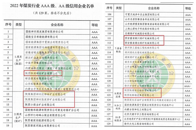 日前,中國煤炭工業(yè)協(xié)會下發(fā)了《關(guān)于公布2022年煤炭行業(yè)AAA級、AA級信用企業(yè)的通知》,陜煤集團(tuán)所屬的彬長礦業(yè)公司、紅柳林礦業(yè)公司、張家峁礦業(yè)公司、小保當(dāng)?shù)V業(yè)公司、西安重裝銅川煤機(jī)公司、西安重裝蒲白煤機(jī)公司、陜煤供應(yīng)鏈公司、鐵路物流集團(tuán)公司等8家單位榮獲“2022年煤炭行業(yè)AAA級信用企業(yè)”稱號。 近年來,陜煤集團(tuán)及所屬單位堅持誠信為本的經(jīng)營理念,在引領(lǐng)行業(yè)誠信經(jīng)營方面作出了突出貢獻(xiàn),樹立了良好形象,贏得了社會各界與客戶的普遍信賴與贊譽(yù)。 據(jù)了解,企業(yè)信用等級評價考核企業(yè)經(jīng)營管理、誠信建設(shè)、財務(wù)實(shí)力、信用記錄、發(fā)展能力等數(shù)十項指標(biāo),全面綜合評價企業(yè)誠信建設(shè)和信用管理水平,提高了企業(yè)的整體公信度,在全國范圍內(nèi)影響頗深。此次煤炭企業(yè)信用等級評價工作是中國煤炭工業(yè)協(xié)會推進(jìn)煤炭行業(yè)信用體系建設(shè),進(jìn)一步弘揚(yáng)“誠信文化”、凝聚“榜樣力量”、共建“信用煤炭”,加快提升煤炭企業(yè)信用管理水平的具體舉措。此次經(jīng)過企業(yè)申報、現(xiàn)場評審、專家評議、社會公示等程序,共有129家企業(yè)榮獲煤炭行業(yè)AAA級、AA級信用企業(yè)稱號。 |