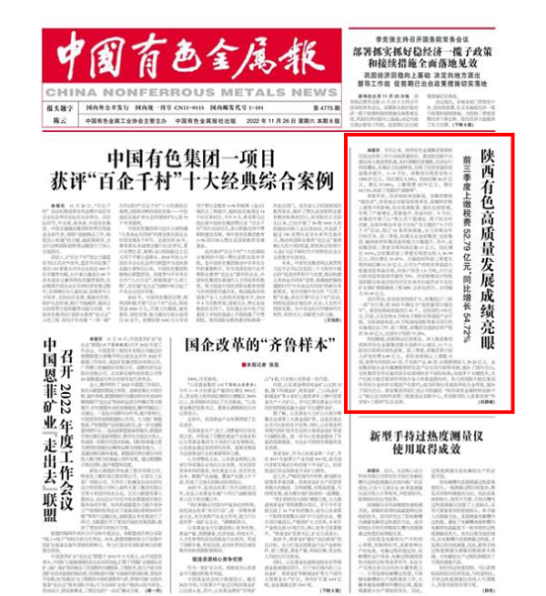 今年以來(lái),陜西有色金屬集團(tuán)緊緊抓住國(guó)企改革三年行動(dòng)高質(zhì)量收官、秦創(chuàng)原創(chuàng)新平臺(tái)建設(shè)深入推進(jìn)等機(jī)遇,及時(shí)調(diào)整經(jīng)營(yíng)策略,經(jīng)濟(jì)運(yùn)行持續(xù)攀高,發(fā)展活力加速釋放,實(shí)現(xiàn)了經(jīng)營(yíng)質(zhì)量和效益穩(wěn)步提升。1—9月份,該集團(tuán)實(shí)現(xiàn)營(yíng)業(yè)收入1258.27億元,同比增長(zhǎng)5.39%;利潤(rùn)總額36.27億元,增長(zhǎng)57.08%;上繳稅費(fèi)52.79億元,增長(zhǎng)54.72%,收獲了亮眼的“成績(jī)單”。 多措并舉,經(jīng)濟(jì)指標(biāo)再創(chuàng)新高。該集團(tuán)聚焦“穩(wěn)經(jīng)濟(jì)”,有效地應(yīng)對(duì)新冠疫情多發(fā)、原輔料價(jià)格上漲等不利影響,優(yōu)化資源配置、強(qiáng)化經(jīng)營(yíng)管理,實(shí)現(xiàn)了產(chǎn)量增長(zhǎng)、質(zhì)量提升、效益向好。9月份,該集團(tuán)開展了以“埋頭苦干穩(wěn)增長(zhǎng)、勇于擔(dān)當(dāng)作貢獻(xiàn)、全面沖刺全年奮斗目標(biāo)”為主題的“大干四個(gè)月”活動(dòng),制訂15條具體措施,全力沖刺全年目標(biāo)任務(wù)。前三季度,權(quán)屬企業(yè)金鉬集團(tuán)、寶鈦集團(tuán)、榆林新材料集團(tuán)盈利能力大幅提升。其中,金鉬集團(tuán)前三季度實(shí)現(xiàn)利潤(rùn)總額11億元,同比增長(zhǎng)101%;寶鈦集團(tuán)前三季度實(shí)現(xiàn)營(yíng)業(yè)收入50.99億元,同比增長(zhǎng)10.47%。天瑞硅材料前三季度實(shí)現(xiàn)利潤(rùn)總額11.21億元,公司生產(chǎn)的粒狀多晶硅大批量直投單晶市場(chǎng),向客戶供貨1.5萬(wàn)噸,占行業(yè)內(nèi)粒狀硅單晶使用量的70%。西安勘察設(shè)計(jì)院組成的聯(lián)合體成功簽約印尼東南蘇拉威西省卡瓦倫礦業(yè)鎳礦精煉鎳鐵工程EPC總承包項(xiàng)目,合同額為20.06億元。 項(xiàng)目帶動(dòng),有效投資持續(xù)擴(kuò)大。該集團(tuán)以“三新一高”為引領(lǐng),將2022年確定為“高質(zhì)量項(xiàng)目建設(shè)年”,謀劃安排高質(zhì)量項(xiàng)目41個(gè),總投資約195億元。目前,正在加快8萬(wàn)噸電子級(jí)粒狀多晶硅產(chǎn)業(yè)升級(jí)、全釩液流電池、15萬(wàn)噸高純硅粉等重點(diǎn)項(xiàng)目的實(shí)施或論證工作。前三季度,該集團(tuán)完成固定資產(chǎn)投資29.35億元,完成年計(jì)劃的71.25%。 科技賦能,創(chuàng)新驅(qū)動(dòng)后勁更足。深入推進(jìn)秦創(chuàng)原陜西有色金屬集團(tuán)聯(lián)合創(chuàng)新中心建設(shè),11個(gè)入駐項(xiàng)目取得實(shí)質(zhì)性進(jìn)展。前三季度,該集團(tuán)累計(jì)投入研發(fā)經(jīng)費(fèi)6.89億元,承擔(dān)省部級(jí)以上課題11項(xiàng),獲得專利授權(quán)61項(xiàng),開發(fā)新產(chǎn)品28項(xiàng)、實(shí)現(xiàn)銷售收入29.24億元。金鉬集團(tuán)鉬合金無(wú)縫薄壁管研發(fā)及產(chǎn)業(yè)化項(xiàng)目取得突破,填補(bǔ)了國(guó)內(nèi)空白;寶鈦集團(tuán)發(fā)布實(shí)施我國(guó)在鈦領(lǐng)域的首個(gè)國(guó)際標(biāo)準(zhǔn);突破多個(gè)關(guān)鍵技術(shù),生產(chǎn)出航天航空緊固件用鈦合金大單重盤圓絲材,助力我國(guó)航天航空緊固件用鈦合金絲材實(shí)現(xiàn)國(guó)產(chǎn)化替代;成功研制出英康洛伊鈦合金帶卷,填補(bǔ)了國(guó)內(nèi)空白。黃金集團(tuán)西安匯創(chuàng)公司組建的“陜西省貴金屬材料創(chuàng)新中心”被認(rèn)定為陜西省第三批制造業(yè)創(chuàng)新中心,其創(chuàng)新團(tuán)隊(duì)入選秦創(chuàng)原“科學(xué)家+工程師”隊(duì)伍名單。 (原文鏈接:https://paper.cnmn.com.cn/Content.aspx?id=176209&q=4775&v=1 ) |