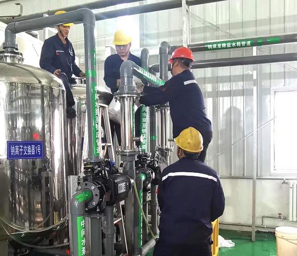 陽極分公司動(dòng)力車間40T除鹽水設(shè)備鈉離子交換器因長(zhǎng)時(shí)間運(yùn)行,交換器內(nèi)樹脂破碎損耗現(xiàn)象較為嚴(yán)重,吸附能力降低,布水器極易出現(xiàn)堵塞,設(shè)備性能發(fā)揮不足,已無法滿足正常生產(chǎn)需求。 為了解決該生產(chǎn)難題,保證余熱鍋爐正常用水,近期,分公司、相關(guān)部門、車間與設(shè)備廠家溝通,現(xiàn)場(chǎng)研究討論,對(duì)2臺(tái)40T除鹽水設(shè)備鈉離子交換器內(nèi)破損樹脂進(jìn)行逐一更換。車間嚴(yán)格按照更換方案,提前備足鍋爐用水,明確分工及更換程序,由檢修班組牽頭,運(yùn)行班組通力配合,技術(shù)人員全過程監(jiān)督指導(dǎo),克服作業(yè)空間褊狹等不利因素,利用帶壓水流作為動(dòng)力源運(yùn)移樹脂、清潔罐壁,用透水性能好的編制袋盛裝、搬移廢舊樹脂和罐壁污垢,然后重新裝填新樹脂。僅用兩天時(shí)間便完成了2臺(tái)40T除鹽水設(shè)備鈉離子交換器樹脂更換工作,在隨后幾天的生產(chǎn)觀察中,設(shè)備運(yùn)行狀態(tài)、效果良好,各項(xiàng)指標(biāo)參數(shù)達(dá)標(biāo)、穩(wěn)定,制水效率由原來20m3/h提升到40m3/h,也完全達(dá)到了設(shè)備設(shè)計(jì)標(biāo)準(zhǔn)。 此次鈉離子交換器樹脂更換工作是動(dòng)力車間挖潛設(shè)備效能,強(qiáng)化設(shè)備管理運(yùn)行的充分體現(xiàn),車間也將繼續(xù)加強(qiáng)成本管控,優(yōu)化技術(shù)指標(biāo),加快推進(jìn)余熱發(fā)電并網(wǎng)項(xiàng)目實(shí)施,努力為公司節(jié)能降耗、創(chuàng)新增效做出積極貢獻(xiàn)。 |