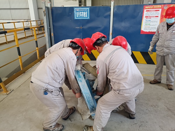 為進(jìn)一步提高職工對(duì)溜槽供風(fēng)風(fēng)機(jī)故障現(xiàn)場(chǎng)應(yīng)急處置能力,強(qiáng)化凈化供料車(chē)間和檢修車(chē)間的協(xié)調(diào)配合,有效檢驗(yàn)車(chē)間設(shè)備應(yīng)急預(yù)案可行性以及檢修維修設(shè)備的效率,3月23日下午,鋁鎂合金分公司凈化供料車(chē)間聯(lián)合檢修車(chē)間在2號(hào)氧化鋁倉(cāng)庫(kù)組織開(kāi)展“溜槽供風(fēng)風(fēng)機(jī)故障”應(yīng)急預(yù)案演練。 此次演練預(yù)想在2號(hào)氧化鋁倉(cāng)庫(kù)打料期間,巡檢人員發(fā)現(xiàn)溜槽供風(fēng)風(fēng)機(jī)聲音異常,造成溜槽供風(fēng)風(fēng)機(jī)無(wú)法正常運(yùn)行停止工作,需要更換溜槽供風(fēng)風(fēng)機(jī)風(fēng)葉恢復(fù)生產(chǎn)為內(nèi)容,分為桌面演練和實(shí)操演練兩部分。為了使桌面與實(shí)地演練更切合實(shí)際,演練采取分別請(qǐng)參演人員以口述回答與現(xiàn)場(chǎng)實(shí)地操作的方式進(jìn)行。從發(fā)現(xiàn)設(shè)備故障采取緊急停機(jī)措施、防止故障擴(kuò)大化,到檢修檢查更換風(fēng)機(jī)的有序配合,再到設(shè)備恢復(fù)后仔細(xì)檢查皮帶全線恢復(fù)正常生產(chǎn),根據(jù)事態(tài)發(fā)展變化,推演現(xiàn)場(chǎng)應(yīng)急處置決策及處置過(guò)程,確保設(shè)備故障能夠迅速、準(zhǔn)確、有效的解決。演練歷時(shí)一個(gè)多小時(shí),全體參演人員積極參與,相互協(xié)調(diào)配合,做到統(tǒng)一指揮、有序進(jìn)行,達(dá)到了預(yù)期目的。 此次演練充分檢驗(yàn)了凈化供料車(chē)間處理突發(fā)設(shè)備故障的能力,增強(qiáng)了車(chē)間之間的溝通和協(xié)調(diào),為保障皮帶輸送系統(tǒng)的安全穩(wěn)定運(yùn)行奠定了良好基礎(chǔ)。 |