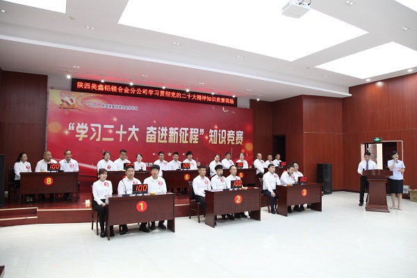 4月21日下午,鋁鎂合金分公司“學習二十大 奮進新征程”知識競賽在四樓會議廳舉行。公司黨委組織部部長包廣平、黨委宣傳部副部長劉芳婧應邀出席。 參加競賽的8支隊伍分別由分公司8個黨支部的精兵強將組成。比賽分為個人必答題、小組必答題、搶答題和對戰(zhàn)題四大環(huán)節(jié)。在第一環(huán)節(jié)個人必答題比拼中,參賽選手們自信大方、對答如流,開場就展現(xiàn)出深厚的理論功底;第二環(huán)節(jié)小組必答題中,各參賽隊冷靜思考,沉著應戰(zhàn),成竹在胸;在最動人心弦、緊張刺激的搶答題環(huán)節(jié),隨著一聲聲“開始搶答”,各隊爭先搶答,緊張而又謹慎,現(xiàn)場“硝煙味”十足。第四環(huán)節(jié)對戰(zhàn)題,每隊指定其它參賽隊伍回答相應分值題目,比分也在激烈的競爭中逐漸拉開差距,整場比賽氣氛被推向高潮。比賽間隙還設置了有獎問答環(huán)節(jié),增加了廣大黨員職工對黨的二十大精神宣傳學習的積極性。經(jīng)過兩個小時的激烈角逐,電解二車間黨支部代表隊脫穎而出榮獲一等獎。 本次活動的開展,使分公司黨員干部職工進一步把思想和行動凝聚到學習貫徹黨的二十大精神上來,持續(xù)推進各項工作,為分公司高質(zhì)量發(fā)展貢獻力量。 |