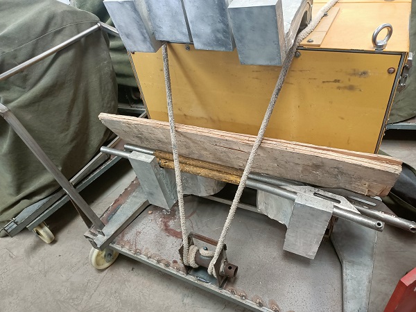 針對(duì)此問題,電解二車間黨支部創(chuàng)新小組仔細(xì)研究,通過測(cè)量計(jì)算,成功制作出6臺(tái)斯維槽開關(guān)專用運(yùn)輸小車。該運(yùn)輸小車采用長125cm、寬85cm鐵板作為車箱主體,以不銹鋼方管為支架,底部四角配有兩個(gè)定向輪、兩個(gè)轉(zhuǎn)向輪使之可隨意調(diào)整方向,握把采用高90cm不銹鋼方管進(jìn)行焊接,并且在每臺(tái)運(yùn)輸小車右側(cè)中間位置加裝緊繩器防止運(yùn)輸過程中發(fā)生側(cè)翻現(xiàn)象。
