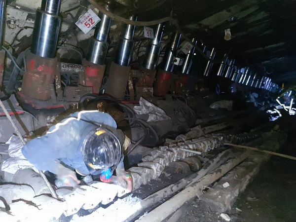 礦業(yè)公司冶煤礦1302工作面從2022年7月份開(kāi)始生產(chǎn)到今年5月份停產(chǎn),期間共生產(chǎn)原煤110萬(wàn)噸。從今年6月份開(kāi)始,1302工作面經(jīng)歷末采上網(wǎng)、拆除運(yùn)輸,9月8日最后一臺(tái)支架升井,9月18日巷道噴漿密閉。至此,1302工作面回撤工作順利完成。 為確保1302工作面安全回撤,該礦成立工作面回撤工作領(lǐng)導(dǎo)小組,未雨綢繆,超前規(guī)劃,在工作面停采前創(chuàng)造撤面條件,制訂回撤前擴(kuò)幫及兩順槽超前維護(hù)等工作面末采措施;提前規(guī)劃回撤路線,確保大件運(yùn)輸安全。同時(shí),加強(qiáng)頂板支護(hù),在壓力較大地段加大支護(hù)密度,以保證端頭支護(hù)平安牢靠,對(duì)兩順槽局部地段壓力較大局域,采用單體柱梁支護(hù)結(jié)合,從而達(dá)到設(shè)備回收要求。在設(shè)備運(yùn)輸過(guò)程中車輛嚴(yán)格按照指定路線行駛、指定地點(diǎn)會(huì)車卸車,確保車輛暢通。在回撤過(guò)程中安排專人現(xiàn)場(chǎng)跟班盯靠巡查,及時(shí)排查處理現(xiàn)場(chǎng)存在的隱患,規(guī)范職工的操作行為,確保按章作業(yè)。每天召開(kāi)一次協(xié)調(diào)會(huì),對(duì)當(dāng)天存在的頂板、設(shè)備裝封車、支護(hù)、運(yùn)輸、地面堆放等問(wèn)題進(jìn)行分析,對(duì)需要協(xié)調(diào)解決的各種問(wèn)題制定解決方案。 此次工作面回撤,礦業(yè)公司和承托方干部職工協(xié)調(diào)一致,配合默契,黨政領(lǐng)導(dǎo)帶頭奮戰(zhàn)一線,接連克服了液壓支架抽架、吊裝難度大、工作面出水導(dǎo)致運(yùn)輸困難、運(yùn)輸巷道坡度、彎度大等困難,為采煤工作面正常接續(xù)提供了有力保障,確保工作面回撤和原煤生產(chǎn)“兩推進(jìn)”“兩不誤”。 |