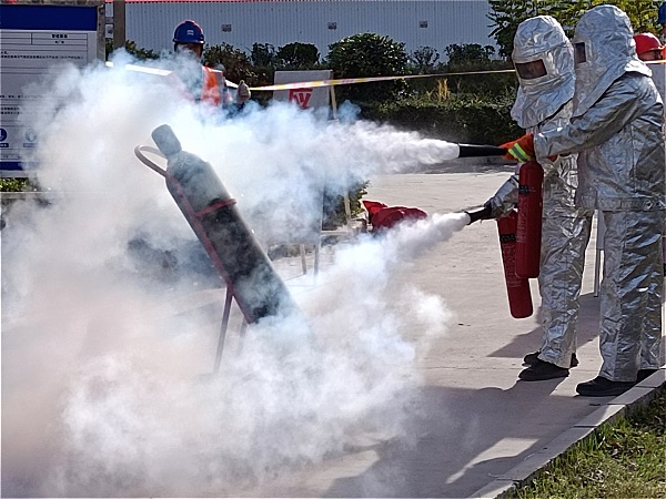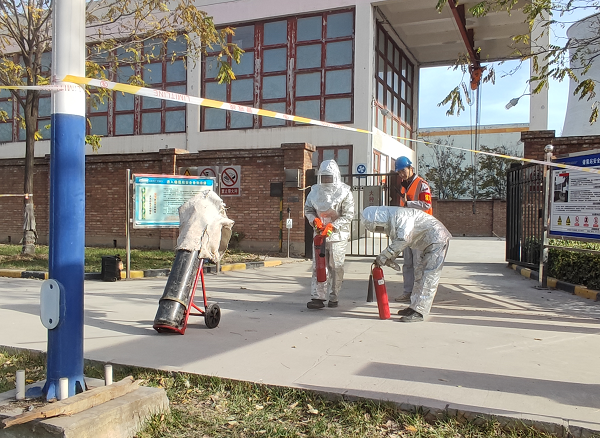 為深刻吸取山西呂梁永聚煤礦火災事故,進一步提升電廠上下應急聯(lián)動能力,11月28日下午,錦陽電廠在儲氫站外開展儲氫站氫瓶泄漏著火事故應急演練。電廠管理人員,各部門、項目部安全員和部分職工在現(xiàn)場進行觀摩。 儲氫站屬于電廠重點防火管轄區(qū)域,氫瓶泄漏著火易引發(fā)氫氣爆炸事故。演練模擬巡檢人員在儲氫站巡檢時檢測氫氣超標,迅速跑到儲氫站外匯報值長并果斷采取通風措施。值長立即聯(lián)系檢修部汽機班進行緊急處理,同時匯報安環(huán)部及電廠領導。汽機班長帶人迅速趕到儲氫站查看,發(fā)現(xiàn)有一氫瓶泄漏,隨即聯(lián)系運行人員對儲氫站泄漏點做安全隔離措施;警戒組立即在周邊拉起警戒線,禁止無關(guān)人員進入現(xiàn)場,避免造成二次傷害;參與搶險人員做好個人防護,快速用推車將泄漏瓶移到儲氫站外,用滅火器對著火點進行滅火,并對泄漏氫瓶正確規(guī)范泄壓;馂膿錅绾螅(jīng)運行人員對儲氫站內(nèi)氫氣監(jiān)測結(jié)果顯示正常后,演練圓滿結(jié)束。 演練結(jié)束后,電廠副經(jīng)理郭軍營進行點評,肯定了本次演練效果并提出要求,要以此次演練活動為契機,進一步加強安全管理,全面提升員工應急處置能力,確保電廠經(jīng)濟安全平穩(wěn)運行。 |
