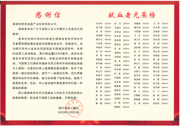 近日,公司收到了一封來自銅川市中心血站的感謝信,信中銅川市中心血站表達(dá)了對公司青年員工積極參與無償獻(xiàn)血的感謝之情和誠摯敬意。 近年來,公司團(tuán)委帶領(lǐng)廣大青年志愿者,積極開展各項(xiàng)志愿服務(wù)活動,擔(dān)當(dāng)實(shí)干,奮發(fā)有為,助推公司文明實(shí)踐工作走深走實(shí),為構(gòu)建和諧社會,樹立企業(yè)良好形象貢獻(xiàn)青春力量。 搭建平臺,志愿服務(wù)按下啟動鍵 為進(jìn)一步踐行社會主義核心價值觀,履行企業(yè)社會責(zé)任,公司團(tuán)委成立陜西美鑫鑫光青年志愿者服務(wù)隊,積極推動志愿服務(wù)活動常態(tài)化、規(guī)范化。自成立以來,公司團(tuán)委緊扣公司黨政各項(xiàng)要求,抓住青年職工培養(yǎng)提升等關(guān)鍵環(huán)節(jié),圍繞公司生產(chǎn)經(jīng)營、開展志愿服務(wù)活動參與人次達(dá)到800余次,服務(wù)時長達(dá)1500余小時。 設(shè)置舞臺,志愿服務(wù)啟動加速鍵 公司青年職工緊緊圍繞企業(yè)中心工作,主動開展陜西省青年安全生產(chǎn)示范崗、陜西省青年崗位能手、銅川市青年文明號等“青”字號品牌項(xiàng)目創(chuàng)建工作,積極參與“中國鋁業(yè)杯”“陜有色杯”職業(yè)技能競賽等大型賽事并取得了優(yōu)異成績。立足本職崗位,鍛煉本領(lǐng),貢獻(xiàn)才智,2023年共完成大、小設(shè)備技術(shù)改造近30項(xiàng),通過修舊利廢活動累計為公司直接節(jié)約成本484.8萬元。 擺下擂臺,志愿服務(wù)打開快進(jìn)鍵 今年以來,公司團(tuán)委充分發(fā)揮志愿者服務(wù)隊的生力軍和突擊隊作用,相繼開展了“學(xué)雷鋒活動月”、創(chuàng)文明城市義務(wù)值勤、“七一”看望抗美援朝老黨員、“迎國慶”職工象棋比賽、“美鑫杯”籃球賽等志愿服務(wù)活動,組織開展了“青春展擔(dān)當(dāng) 服務(wù)暖人心”無償獻(xiàn)血活動,公司廣大團(tuán)員、青年志愿者、青年職工踴躍參與,100余人累計成功獻(xiàn)血23800毫升。 下一步,公司團(tuán)委將繼續(xù)秉持“奉獻(xiàn)、友愛、互助、進(jìn)步”的志愿服務(wù)精神,創(chuàng)新理念、拓展領(lǐng)域、壯大隊伍、提高水平,積極開展好各類志愿服務(wù)活動,引領(lǐng)廣大青年職工厚植家國情懷、涵養(yǎng)進(jìn)取品格。 |