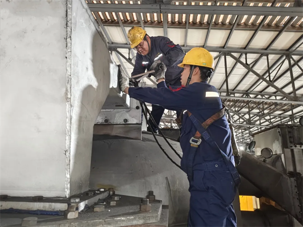 陽極分公司焙燒車間多功能天車工在作業(yè)中發(fā)現(xiàn),2#多功能天車出現(xiàn)吸料緩慢情況,嚴(yán)重影響炭塊裝出爐效率。經(jīng)維修人員排查發(fā)現(xiàn),造成吸料緩慢的主要原因是吸料管彎頭由于物料磨損、管壁變薄、存在漏點(diǎn)導(dǎo)致負(fù)壓泄漏所致。 為了不影響正常生產(chǎn),車間立即組織召開專題會議討論制定維修方案。由于吸料管彎頭整體鋼板已經(jīng)變薄,通過補(bǔ)焊處理無法從根本上解決負(fù)壓泄漏問題,車間決定對吸料管彎頭進(jìn)行更換。因更換作業(yè)涉及危險(xiǎn)作業(yè),車間提前辦理高空作業(yè)及吊裝作業(yè)工作票,對該區(qū)域設(shè)置警戒線,換裝過程維修人員嚴(yán)格按照操作規(guī)程進(jìn)行作業(yè),并由專人指揮吊車,確保作業(yè)全過程人員設(shè)備安全。在各個(gè)環(huán)節(jié)的緊密配合下,僅用一上午就完成了2#多功能天車吸料管彎頭更換工作,經(jīng)帶料運(yùn)行穩(wěn)定后投入正常使用。 此次2#多功能天車吸料管彎頭更換后,吸料時(shí)間較更換前減少了50%左右,工作效率大幅提升。下一步,車間將持續(xù)加強(qiáng)設(shè)備點(diǎn)巡檢力度,及時(shí)發(fā)現(xiàn)并處理設(shè)備隱患,為分公司安全生產(chǎn)提供穩(wěn)定可靠的設(shè)備保障。 |