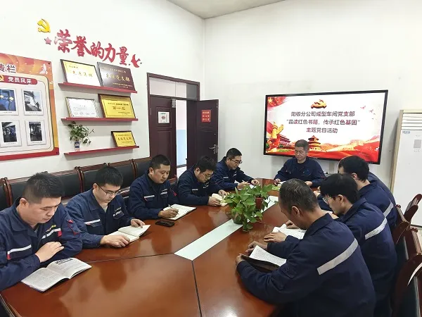 11月20日,陽極分公司成型車間黨支部組織開展“品讀紅色書籍 傳承紅色基因”主題黨日活動(dòng)。 活動(dòng)現(xiàn)場,大家共同閱讀了《把一切獻(xiàn)給黨》《百年信仰》《紅色延安故事》《苦難輝煌》等紅色經(jīng)典書籍,感知那一段段波瀾壯闊的歷史。隨后,在交流發(fā)言環(huán)節(jié),大家分享讀書感受、暢談學(xué)習(xí)收獲。支部委員張磊現(xiàn)場分享了《把一切獻(xiàn)給黨》的閱讀感悟,“這本書的作者吳運(yùn)鐸同志用自己的一生詮釋了怎樣‘把一切獻(xiàn)給黨’,是我們每個(gè)黨員學(xué)習(xí)的榜樣,我要勇于擔(dān)責(zé)、認(rèn)真盡責(zé),做好模范表率,用實(shí)際行動(dòng)為公司健康可持續(xù)發(fā)展貢獻(xiàn)力量!彼f道。 現(xiàn)場黨員一致表示,在今后工作中,始終堅(jiān)定理想信念,傳承和發(fā)揚(yáng)黨的優(yōu)良傳統(tǒng)和工作作風(fēng),踔厲奮發(fā)、勇毅前行,以飽滿的工作熱情和積極的工作態(tài)度干好本職工作。分享結(jié)束后,黨支部書記帶領(lǐng)黨員重溫入黨誓詞,大家緊握右拳、面向黨旗、莊嚴(yán)宣誓。 此次活動(dòng),不僅為廣大黨員提供了學(xué)習(xí)和交流的平臺(tái),筑牢了“信仰之基”,補(bǔ)足了“精神之鈣”,也激發(fā)了黨員愛黨愛國情懷和創(chuàng)新創(chuàng)造活力。下一步,成型車間黨支部將努力把“主題黨日”打造成為提升隊(duì)伍凝聚力、落實(shí)重點(diǎn)任務(wù)的有效載體,將成果成效轉(zhuǎn)化為高質(zhì)量干好安全生產(chǎn)工作的強(qiáng)大動(dòng)力。 |