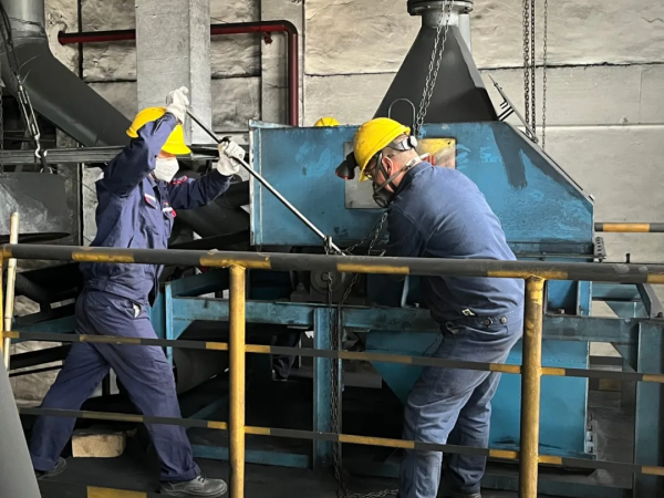 春節(jié)將至,為保證節(jié)日期間生產(chǎn)安全,陽極分公司煅燒車間細致開展隱患排查工作。在排查中,車間發(fā)現(xiàn)轉(zhuǎn)運站3215膠帶輸送機主動滾筒存在異響,并伴隨有明顯卡滯現(xiàn)象,如果處理不及時,可能會導致生產(chǎn)線中斷。 為查清設備異響原因,保證生產(chǎn)連續(xù)性,車間迅速停運3215膠帶輸送機進行深入排查,并啟動備用的3216膠帶輸送機。經(jīng)排查分析,確定是膠帶輸送機滾筒齒輪磨損所致,車間立即啟動設備搶修應急預案,討論制定搶修方案,組織檢維修人員進行搶修。作業(yè)過程中,由于空間小、設備多,現(xiàn)場更換磨損齒輪難度很大,車間隨即決定先對滾筒整體進行更換,再將舊滾筒維修后留作備用。搶修過程中,作業(yè)人員有效利用起重吊裝設備、液壓推車,巧妙采用雙邊吊裝法來維持平衡,并結(jié)合“一緊一松”的方式逐步推進,經(jīng)過連續(xù)八小時的不間斷作業(yè),終于將重達500公斤的舊滾筒順利拆卸轉(zhuǎn)運至維修區(qū)域,并將新滾筒安裝到位。隨后,技術(shù)人員對滾筒和皮帶平行度進行調(diào)節(jié),滿足技術(shù)要求后啟用生產(chǎn)。 接下來,車間將進一步加強設備隱患排查力度,特別是對關(guān)鍵設備、重要部位進行深度檢查,及時發(fā)現(xiàn)并消除隱患風險,確保春節(jié)期間生產(chǎn)工作連續(xù)、穩(wěn)定、安全、可靠。 |